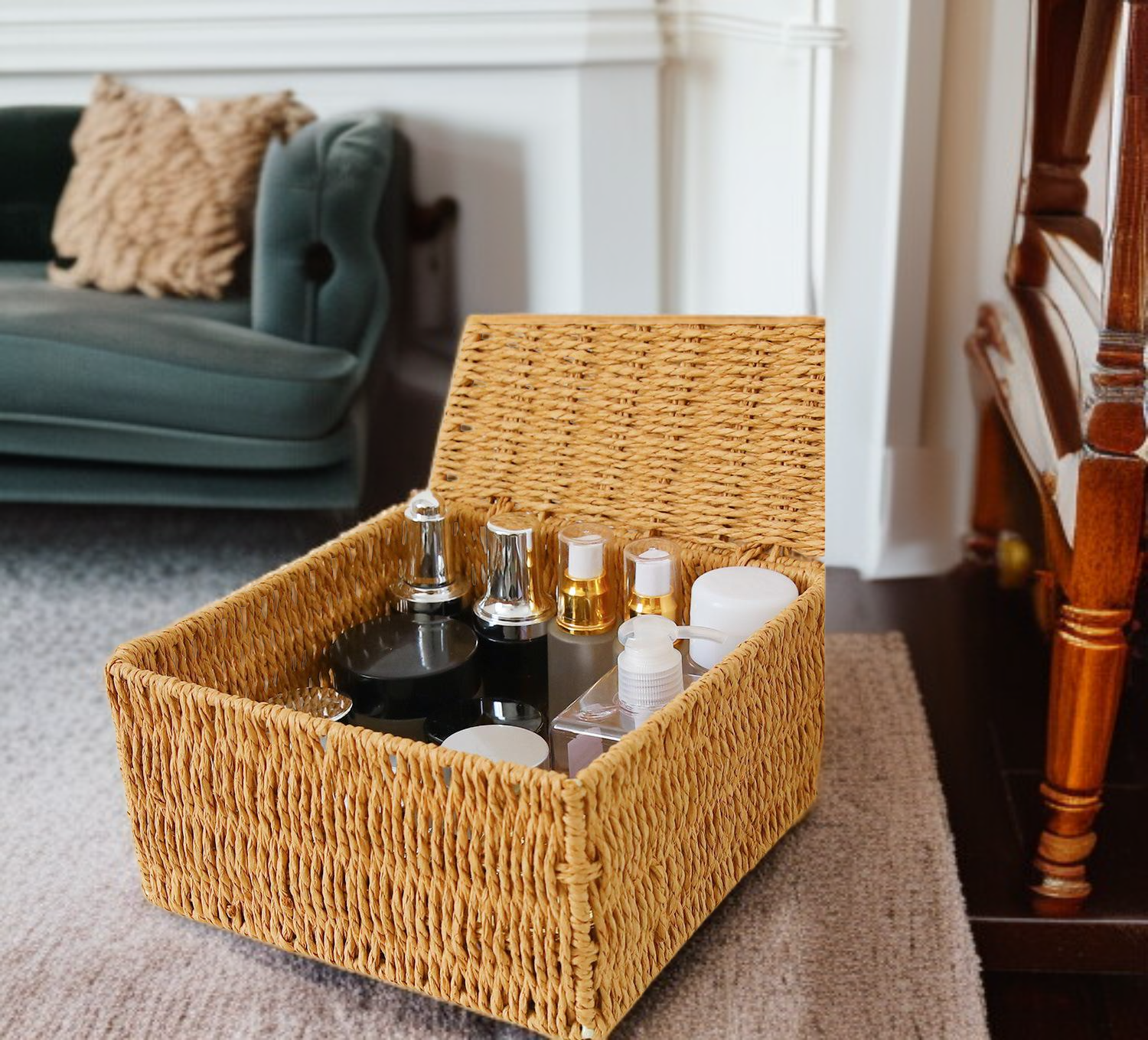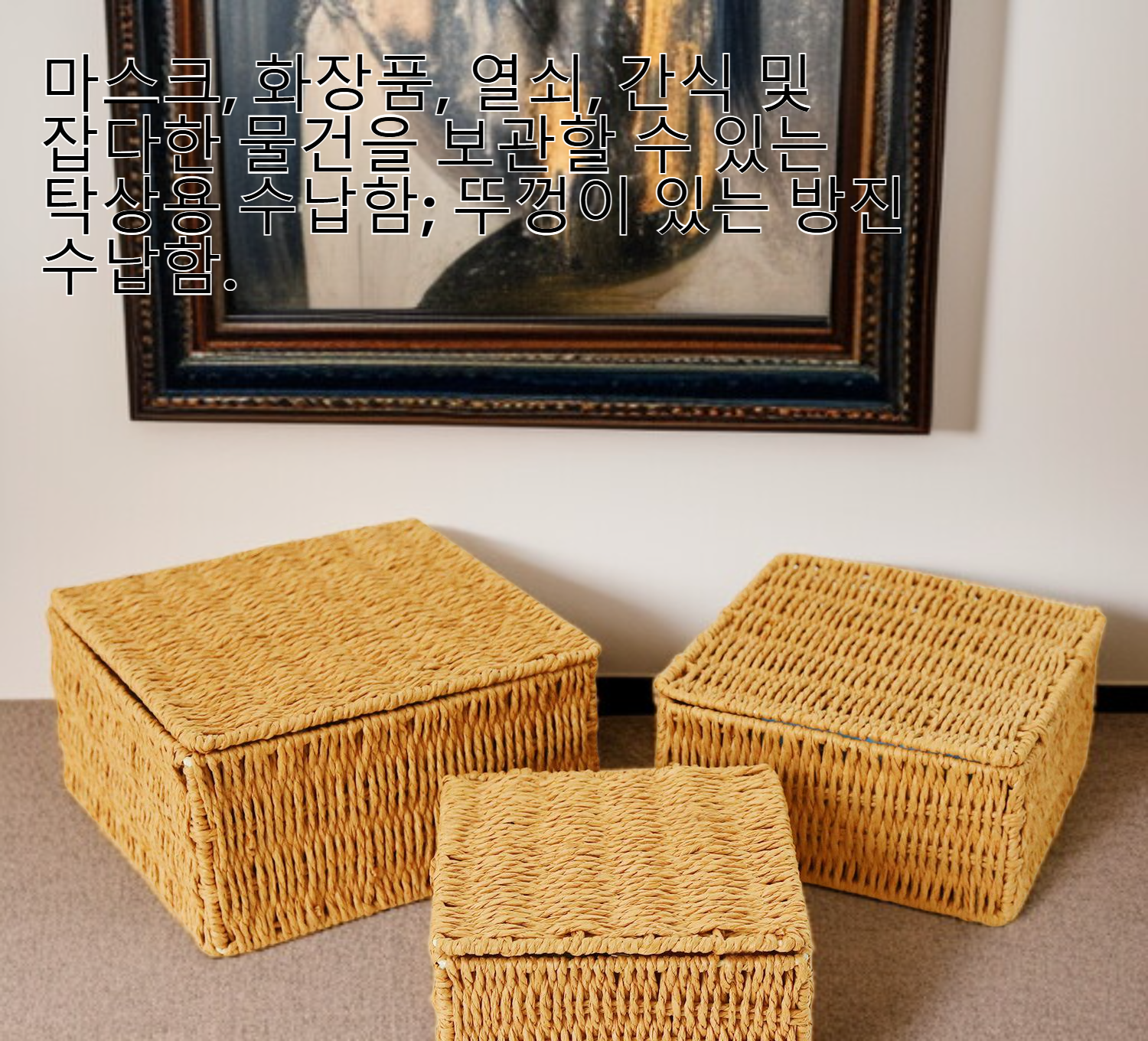 마스크, 화장품, 열쇠, 간식 및 잡다한 물건을 보관할 수 있는 탁상용 수납함; 뚜껑이 있는 방진 수납함.