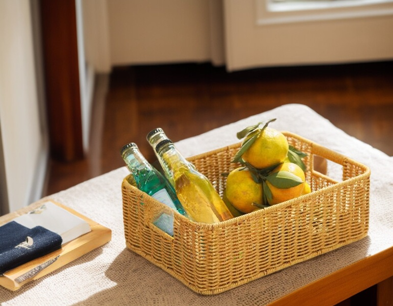 데스크탑 간식 화장품 수납 바구니, 모조 라탄 커피 테이블 수납 바구니, 거실 TV 수납 바구니