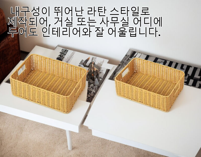 ● 내구성이 뛰어난 라탄 스타일로 제작되어, 거실 또는 사무실 어디에 두어도 인테리어와 잘 어울립니다.