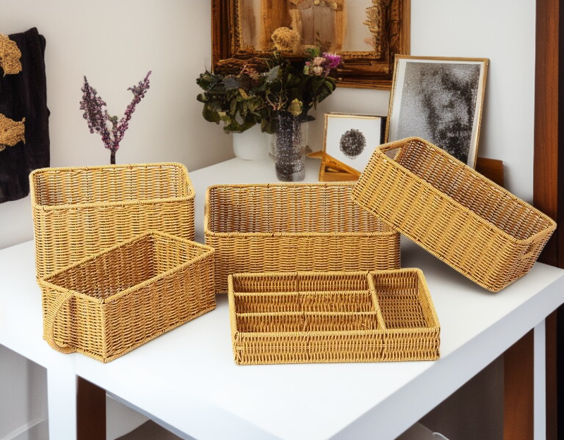 색상:직사각형 노란색 꽃무늬 수납바구니 33x23x11CM, 직사각형 노란색 꽃무늬 수납바구니 36x26x12CM, 직사각형 노란색 꽃무늬 수납바구니 30x20x17CM, 손잡이 달린 직사각형 노란색 꽃무늬 수납바구니 29x16x11CM, 칸막이 있는 직사각형 노란색 꽃무늬 칼・포크 바구니 35x25x6CM