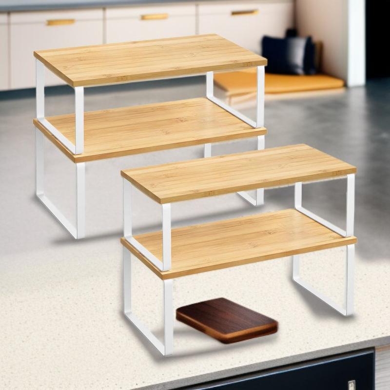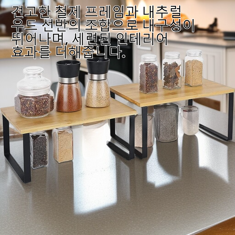 주방용 철제 선반, 향신료 그릇 수납 선반, 2단 적층형 데스크탑 수납 선반, 나무 수납 선반